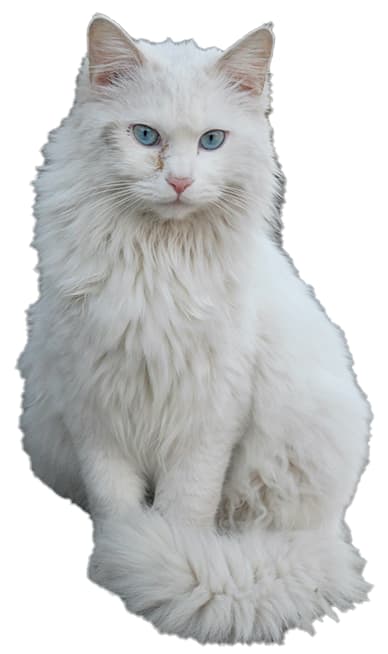 Sus orejas son grandes y puntiagudas, en armonía con la forma triangular de su cabeza. Este diseño anatómico contribuye a su apariencia alerta y elegante. En conjunto, el Gato Angora exhibe una amalgama de detalles sublimes, desde su pelaje suntuoso hasta sus ojos expresivos y su postura grácil, haciendo honor a su reputación como una de las razas más elegantes del reino felino.