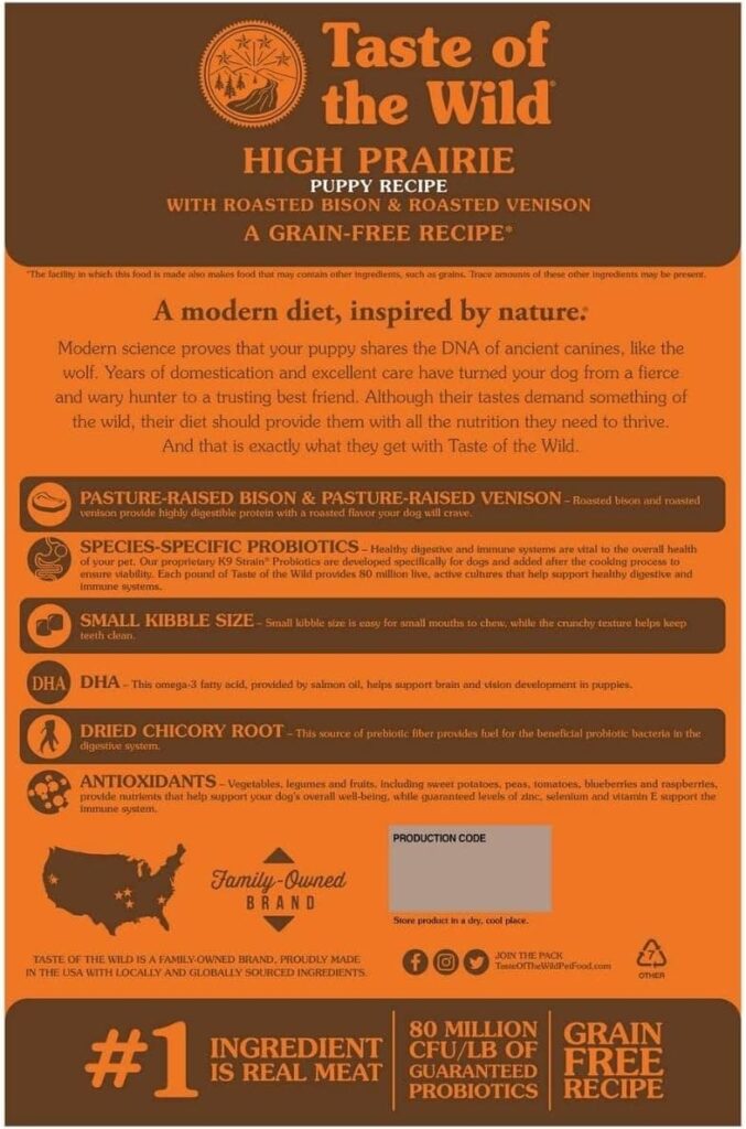 💪 Cachorros Sanos y Fuertes: Taste Of The Wild High Prairie Puppy está diseñado para satisfacer las necesidades nutricionales específicas de los cachorros en crecimiento. Con una combinación equilibrada de proteínas, grasas, vitaminas y minerales, garantizamos que tu cachorro crezca sano, fuerte y lleno de vitalidad desde el principio.